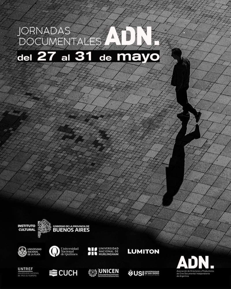 Organizadas por la Asociación de Directores y Productores de Cine Documental Independiente de la Argentina, del 27 al 31 de mayo se llevarán a cabo las JORNADAS DOCUMENTALES ADN con proyecciones y actividades simultáneas en distintas sedes de la provincia de Buenos Aires.
