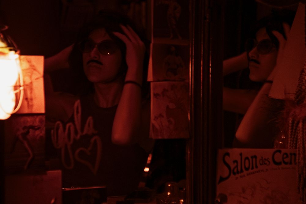 Gala se sienta frente al espejo y agarra los maquillajes de Kiwi como si fuesen suyos. Escribe su nombre y un corazón sobre el vidrio con labial rojo y se disfraza con un bigote y peluca: un gesto que refleja el abandono de cualquier tipo de transparencia en su persona. Una luz rojo-pasión la alumbra de costado mientras se despide por teléfono de su mamá con un frío y distante “te amo”. A través del espejo de tres partes su figura aparece duplicada, el encuadre acentúa su doble personalidad. Durante ese tiempo, Kiwi, quien se siente mal, vomita detrás de la puerta del baño al fondo de la imagen. Todos estos elementos construyen (al estilo de Úrsula en La Sirenita) el retrato dramático de Gala, la villana de la historia. Este plano es uno de los varios que evidencian lo presente que se encuentra la ópera prima de Axel Cheb Terrab en sus detalles.
